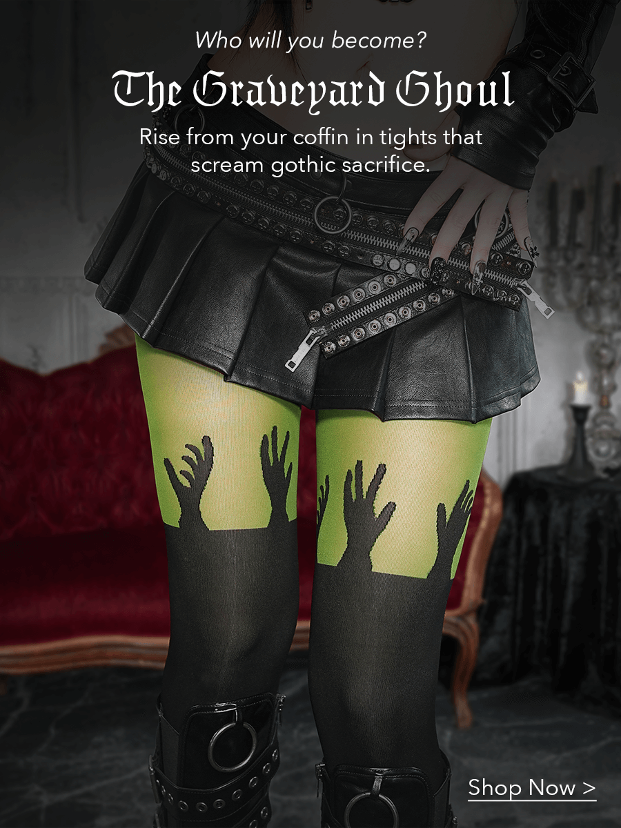 These pieces are perfect for anyone who loves alternative fashion and wants to keep the spooky vibes going all year round. From fully opaque 80 denier tights to beautifully detailed mixed-denier styles, you can find the perfect fit and feel for your spooky soul.