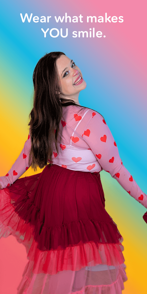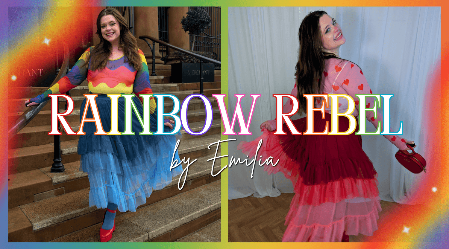 Like everything we do, the Rainbow Rebel collection is ethically made and fully size inclusive. Every single piece, from the mesh tops to the tiered skirts, is available in sizes 0 to 34. We believe joy comes in every size, and your clothes should fit you perfectly, not the other way around.