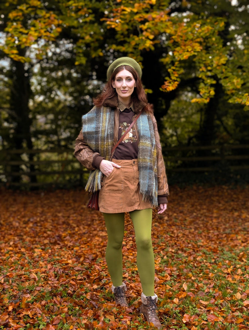 Our 120 denier opaque tights are a proper winter essential, and now in Fern, a rich, muted green. This shade whispers of will-o’-the-wisps in the forest and brings a touch of woodland magic to your winter wardrobe.