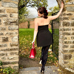 A party season showstopper, Starlight Seam, our elegant 80 denier black tights with a sparkling trail of glitter stars and snowflakes running up the back of each leg. Flirty, festive and effortlessly sophisticated, these tights are the perfect way to add a touch of Christmas magic to any outfit. The shimmering back seam catches the light as you move, creating a look that feels both classic and completely enchanting.