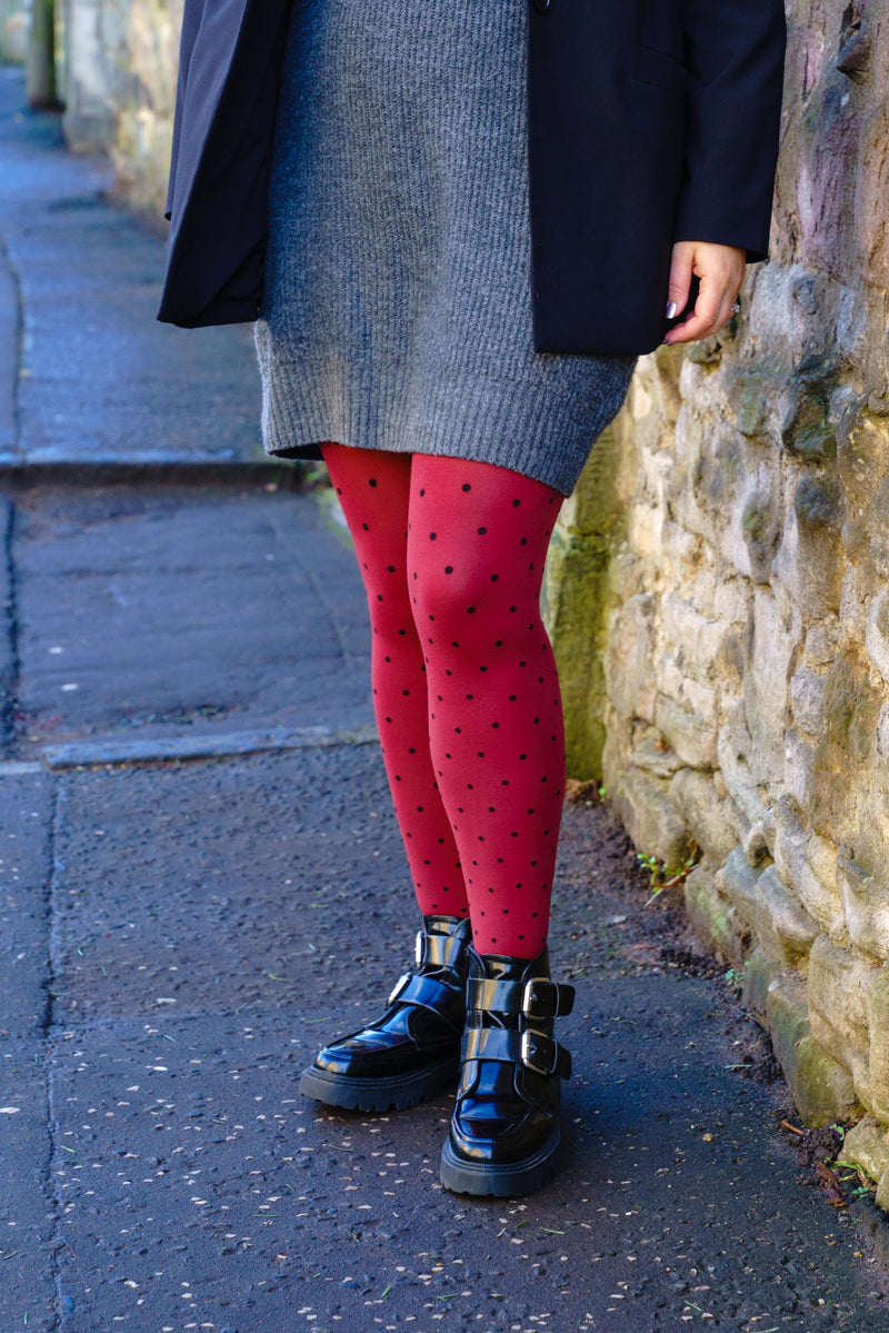 The deep burgundy shade is warm, flattering, and perfect for colder months, while the black dots add a subtle, fun twist that works just as well with knits, dresses, or winter boots. Designed with our signature super-stretchy fit, Cherry Dot hugs your curves comfortably, stays exactly where you want it, and moves naturally with your body. The high waistband sits securely without rolling or pinching, and the soft, durable fabric is built to keep up with everyday wear. A breathable cotton gusset ensures all-day freshness, making these tights a stylish winter essential you’ll reach for again and again.