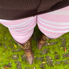 Say hello to Sugar Plum, the sweetest, softest festive tights of the season. With a creamy white base and delicate pastel pink diagonal stripes inspired by our Angel Delight shade, these 80 denier tights turn your legs into the prettiest candy canes imaginable. Gentle, charming and full of whimsical Christmas spirit, they bring a touch of sweetness to even the simplest winter outfit.