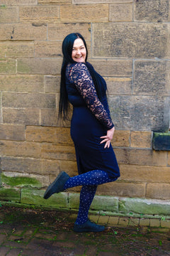 The rich navy base gives smooth, warm coverage, while the repeating white dots bring a touch of fun that pairs effortlessly with dresses, skirts, or chunky knits. Versatile, comfortable, and effortlessly stylish. Made with our signature super-stretchy, stay-put fit, these tights mould to your body without feeling tight or restrictive. The high waistband sits comfortably without rolling or digging in, and the soft, durable fabric is designed to keep up with everything from office days to late-night adventures. A breathable cotton gusset keeps you feeling fresh, making Sweet Spot your go-to tights all winter long.