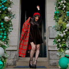 Step into timeless glamour with the Black Velvet Baby Doll Dress, your go-to for effortless Christmas sparkle. Cut from inky black velvet that’s so sumptuously soft you’ll want to hug yourself, it feels like a secret midnight treat. The sweetheart bust fits close and flatters, then flares into a playful skirt that skims just above the knee. Full-length balloon sleeves finish with neat cuffs, adding a touch of Audrey Hepburn elegance to any festive soirée. Like Audrey says, “Happy girls are the prettiest girls!” and this perfect dress will make everyone happy.