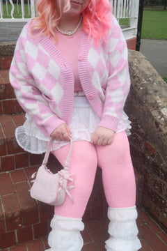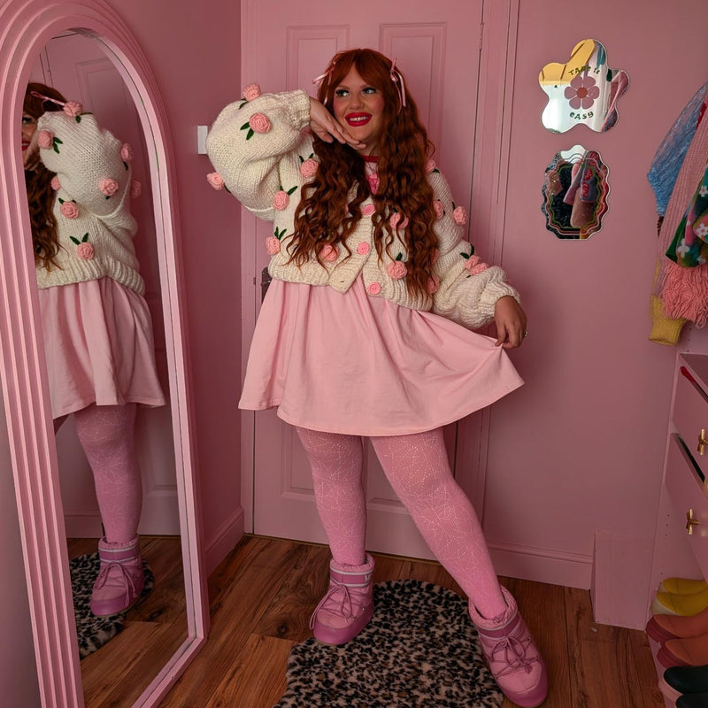 These tights bring a gentle touch of wonder to your wardrobe. The pastel pink base feels playful and soft, while the dotted design creates the effect of frosted windowpanes catching the morning light or the glint of sugar crystals on freshly baked cookies. Whether you style them with something cute and cosy or let them peek out beneath your party dress, they add a uniquely whimsical twist to winter dressing.