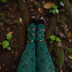 The Corra Snake Tights add instant depth and sophistication to your wardrobe. Play up the historical and natural drama!