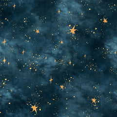 🌌 Swirls of deep blue and teal with scattered golden stars on semi-sheer mesh