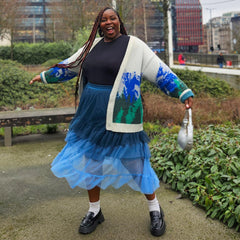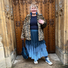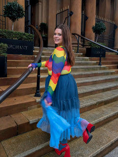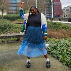 Three ocean-kissed shades of blue, one seriously beautiful skirt. The Ombre Mesh Maxi Skirt in Blue flows from Ice Blast, a frosty baby blue at the hem, drifting into Denim, a soft faded blue inspired by your favourite worn-in jeans, and finishing with Bone China, a deep blue with a hint of teal that echoes the watery depths of Delftware.