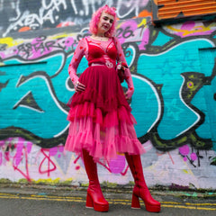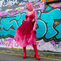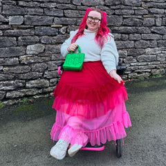 Style it with a matching mesh top for full colour chaos, a cosy knit and trainers for everyday magic, or dress it up with heels for dancing through life. This skirt is for anyone who loves clothes that say exactly how they feel on the inside.