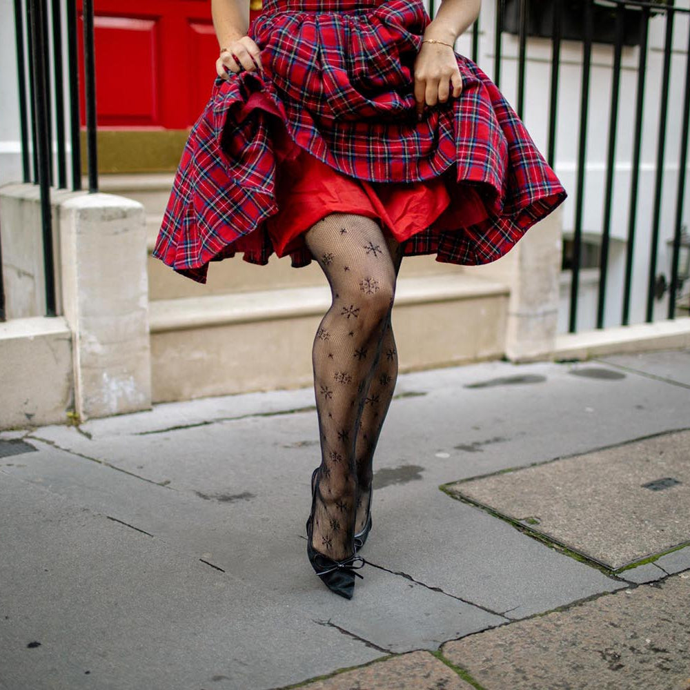 - The Look: These opaque burgundy tights aredesigned to mimic the look of wearing socks over sheer tights, giving you a layered, fashion-forward aesthetic without the bulk.