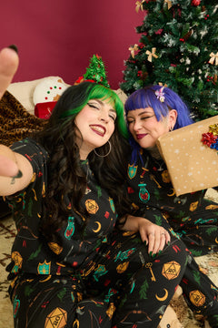 Our TTRPG PJ Boxy Tee turns bedtime into your ultimate campaign. Who doesn't love Dungeons & Dragons? Choose your weapon (battleaxe, crossbow or dagger), swig a potion of healing for that restorative slumber, or our favourite potion of gaseous form to float off into dreamland.