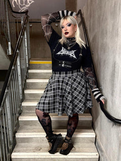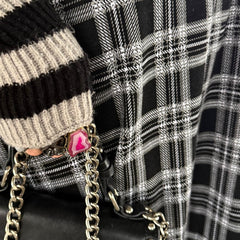 🖤 Black base with white and grey stripe tartan plaid for classic monochrome style