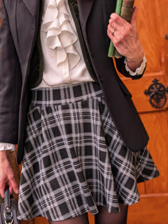 Clean, classic and seriously cool, the Cairn Plaid Flare Skirt in Mini length brings sharp monochrome energy with a playful twist.
