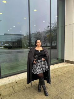 The Cairn colourway features a deep black base with crisp white and grey stripe tartan plaid for a timeless, monochrome look. It is perfect if you love the shape and drama of plaid but want something sleek and minimal. Style it with an oversized knit, a sharp blazer or a black mesh top for modern edge or full Goth vibes. This skirt plays well with everything in your wardrobe.